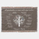 Nanas Menge, a-Andenken-Wurfsdecke für Großmutter. Stammbaum im Weiß auf Taupe, mit 12 bunten Vögeln und Raum, Namen und Geburtstage für bis 12 Enkelkinder (oder große Grandkids hinzuzufügen!). Basis des Baums sagt Nanas Menge (personifizieren Sie mit jedem möglichem Namen/Titel, die Sie mögen). Zitat an der Spitze des Baums sagt: Eine Großmutter ist eine Mamma mit ExtraZuckergusse! (oder fertigen Sie mit Ihrem eigenen Sprichwort besonders an). Addieren Sie Ihre eigenen Namen und Geburtstage. Verlassen Sie etwas von dem Namenfreien raum, wenn Sie nicht alle 12 Stellen benötigen!