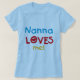 Nanna Lieben Me T - Shirt, Karten, Aufkleber, Karosserietaschen, und mehr mit farbenfroher rot, gelb und blau Text und Herzdesign. Diese Nanna Lieben mir Bekleidung und Geschenke werden nanna Lächeln!