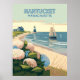 Nantucket Beach Hydrangeas Lighthouse Boat Retro Poster
