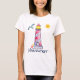 Ein T - Shirt, der Nantucket mit einem rot gestreiften Leuchtturm und einem Beachball sagt, und eine lächelnde Sonne und fliegende Seagull in der Ferne.