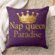 Reign supreme over naptime with this luxurious deep plum and gold pillow featuring "Nap queen/king in residence" with crown icon. Perfect statement piece for master bedrooms, guest rooms, or reading nooks. Great gift for anyone who takes their rest seriously. Rich jewel tones and metallic gold accents add regal elegance to beds and couches.
