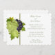 Einladung zur Hochzeit in einem klassischen, aber frischen Look Layout in den Farben olivgrün und weiß mit olivgrünem Text in Schrift mit einem Kunstdruck von Trauben. Ideal für Paare, die im Napa-Tal oder in jeder Weinkellerei verheiratet werden wollen. Passen Sie diese Einladung an und ändern Sie den entsprechenden Text an Ihren.