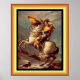 Poster mit goldbedrucktem Rahmen ~ "No Matting Necessary" [Jacques-Louis David, Public domain, via Wikimedia Commons] ~ * ~ Napoleon hat einen orangefarbenen Mantel, der Knollen (Manschette) seines Handschuhs ist bestickt, das Pferd ist piebald, schwarz und weiß, und der Stapel ist vollständig und enthält eine stehende Märchenfigur. Der Gurt um den Bauch des Pferdes ist ein dunkles verblasstes Rot. Der Offizier, der im Hintergrund ein Säbel hält, wird vom Schwanz des Pferdes verschleiert. Napoleons Gesicht erscheint jugendlich.