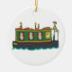 Das Fun Schmalschiff Design besticht durch stolzen Kapitän, der schmale Boote durch die Schleusen und Wasserstraßen in ruhiger Umgebung pilotiert. Komplett mit Schiffshund, Blume und anderen Details, eine handgezeichnete Grafik für Kanalbootbesitzer, Besitzer und Urlauber.