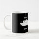 Eine Tasse mit einem White Narrowboat Emblem und die Möglichkeit, den Text Ihrer Wahl oben und unten hinzuzufügen.
