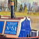 Ein Retro-Kunstdesign eines geschmückten Schmalschiffes.