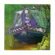 Ein Kunstprojekt eines Schmalschiffes, das in einer friedlichen Umgebung am Kanal verankert ist.