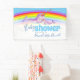 Rainbow Baby Duschbanner mit niedlicher Narwal Aquarellmalerei und grafischem Regenbogen in den traditionellen Regenbogenfarben mit blauem Himmel. Persönlich mit eigenem Namen für die Babydusche. Weitere passende Artikel sind verfügbar. Einzigartige Aquarellkunst und Design von Sarah Trett für www.mylittleeden.com