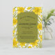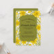 Ein weiches, grünes Mittelpaneel, gerahmt von gemalten gelben Narzissen, bildet einen frischen, vom Frühling geküssten Hintergrund für diese elegante Babyshower-Einladung. Die Blumenbordüre wirkt luftig und elegant, während die Typografie modernen Charme mit klassischer Wärme verbindet. Es handelt sich um ein professionell gestaltetes, druckfertiges Layout, das die Details der Veranstaltung klar und schön präsentiert. Perfekt für Käufer, die eine zeitlose, garteninspirierte Einladung möchten, die wie maßgeschneidert aussieht.