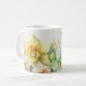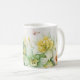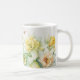 Diese klassische weiße Kaffeetasse wird mit einem hübschen Narzissen-Blumenmuster gezeigt.