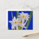 Weiße Narzisse gegen einen klaren blauen Himmel. Früh im Frühling blüht die Narzisse ziemlich laut. "Der Frühling ist da!"