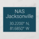 Längen- und Breitengradkoordinaten für die US Marine Air Station NAS Jacksonville in Florida Roboto Stil weißen Schriftart auf Navy blauen Hintergrund.