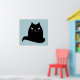 Illustration einer übergewichtigen schwarz rosa nussten Katze über einem Ente-Ei-blauen Hintergrund. Auch die Hintergrundfarbe kann geändert werden.