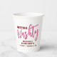 Personalisierte Junggeselinnen-Abschied oder Girls Weekend Friends Trip Custom Paper Cups mit bearbeitbarem Text und Text mit Reisedatum, Ziel oder Ort, Name und lustige Zitat wie "Getting Nashty" in Rosa und Bordeaux.