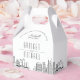 Bringen Sie Ihrem Hochzeitsgast ein Lächeln mit diesen niedlichen und dennoch eleganten Skyline-Schachteln der Stadt Nashville. Sie werden von einem Begrüßungsgruß auf der Vorderseite begleitet, gefolgt vom Namen der Stadt und dem Hochzeitstag darunter. Darunter befinden sich die Namen der Neuvermählten in einem luftigen Schriftart. Um das untere Ende der Stadt herum befindet sich eine moderne Deko-stilisierte Version der einzigartigen Skyline der Stadt. Auf der Rückseite sind Hochzeitsglocken mit der Meldung "Liebe ist süß" ein Indikator für die Leckereien in der Box und die Liebe des Paares, das die Box repräsentiert. — Sie eignen sich als Gefälligkeitsbox für jede Art von Hochzeitsfeier wie z.B. eine Verlobungsfeier, ein Probe-Dinner oder ein Empfang-Dinner. Die neutrale Schwarz-Weiß-Farbe passt perfekt zu fast jedem Hochzeitsszenario. Genießen Sie die Anpassung und machen Sie es zu Ihrem eigenen!