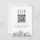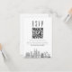 Eine minimale Hochzeitsrsvp QR-Code-Karte mit einer schönen stylisierten Skyline, die die Stadt Nashville repräsentiert. Ersetzen Sie den QR-Code durch einen Link zu Ihrer Website, um Ihren künftigen Gästen die Beantwortung Ihrer Hochzeitsfeier zu erleichtern.