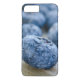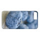 Extrem nah von einer reifen Heidelbeere mit Wassertröpfchen.