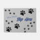 Willkommen Hundeliebhaber mit diesem Doormat mit Pfotendrucken und Text, den Sie personalisieren können, zeigt Sprichwort Wet Paws Step Hier. Ein weicher, neutraler grauer Hintergrund mit blauen Texten passt gut zu vielen verschiedenen Hundefreundesstilen, oder ändern Sie die Farben zu Anzug Ihrer Zuhause.