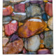 Nasse Wand aus Schnee in einem feuchten Schnee und Regen Winterwetter. Farbige Steine verschiedener Formen. Einige von ihnen sind mit Schnee bedeckt. Simuliertes Ölgemälde aus einer Fotografie. Duschvorhang zu dekorieren Ihr Badezimmer für Spaß und gute Laune.