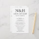 Modernes Hochzeitsprogramm mit einem einfachen und minimalen Schwarz-Weiß-Design mit Ihrem Monogramm in einem kühlen Schriftart zusammen mit Ihren Namen in einem eleganten Schriftsatz. Unten ist Ihre Reihenfolge der Zeremonie und der Rücken hat Ihre Hochzeitsfeier, "in liebevoller Erinnerung" Nachricht und danke Ihnen Nachricht.