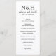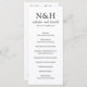 Modernes Hochzeitsprogramm mit einem einfachen und minimalen Schwarz-Weiß-Design mit Ihrem Monogramm in einem kühlen Schriftart zusammen mit Ihren Namen in einem eleganten Schriftsatz. Unten ist Ihre Reihenfolge der Zeremonie und der Rücken hat Ihre Hochzeitsfeier und danke Ihnen Nachricht.