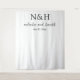 Moderne Foto-Kulisse mit einem schlichten und minimalen Schwarz-Weiß-Design mit Ihrem Monogramm in einem kühlen Schriftart zusammen mit Ihren Namen in einer eleganten Handschrift und Ihrem Hochzeitstag.
