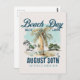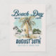 Der National Beach Day ist der 30. August. Feiern Sie mit diesem Retroposter-Stil mit Strand, Palmen, Surfbrett und Pelican.