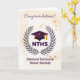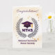 An elegant design featuring a graduation cap framed by a laurel wreath with purple and gold tones, accented by celebratory stars, created to honor induction into the National Technical Honor Society. The soft background wash adds a ceremonial touch, making this design perfect for recognizing achievement and dedication. One version features the full National Technical Honor Society wording, while another allows for personalization with a customizable name for a more personal keepsake.