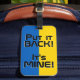 Die Nationalflagge der Ukraine Funny Patriotic Gepäck Tag mit der Ukraine nationalen Fahne Farben, die die Vorderseite des Tags bedecken. Witziger Text "Legen Sie es zurück! Es ist MINE" ist über die Flaggenfarben geschrieben. Der Text kann mit der Funktion "Anpassen!" vollständig angepasst werden. Die andere Seite des Tags ist für Ihre Informationen reserviert. Dieser super lustige Ukraine Gepäcktag ist der perfekte Begleiter für Ihre Reisetasche und das schöne Geschenk für jeden Anlass. © CountriesOfTheWorld