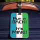 Usbekistan National Flag Funny Patriotic Luggage Tag mit den nationalen Flaggen Usbekistans, die die Vorderseite des Tags bedecken. Witziger Text "Legen Sie es zurück! Es ist MINE" ist über die Flaggenfarben geschrieben. Der Text kann mit der Funktion "Anpassen!" vollständig angepasst werden. Die andere Seite des Tags ist für Ihre Informationen reserviert. Dieser super lustige Usbekistan Gepäcktag ist der perfekte Begleiter für Ihre Reisetasche und das schöne Geschenk für jeden Anlass. © CountriesOfTheWorld