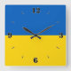 Die Nationalflagge der Ukraine Patriotic Square Uhr mit der Landesflagge in den Nationalfarben, die über die Uhr gedruckt werden. Die Uhrennummern in den entsprechenden Farben werden über den Flaggenfarben platziert. Dieses beeindruckende Design ist das perfekte Geschenk und das großartige Stück an der Wand. © 2023 Länderder Welt