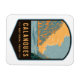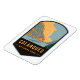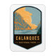 Ein Vintages Natur-Abzeichen-Design des Calanques Nationalparks oder des Parc National d’En Vau in En Vau an der Mittelmeerküste in Südfrankreich.