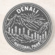 Denali Monoline Design. Der Park hat Terrain von Tundra, Fichtenwald und Gletscher, der Park ist Zuhause für Wildtiere inklusive Grizzlybären, Wölfe, Elche, Karibu und Dall Schafe.