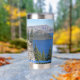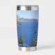Ein trendiger Edelstahl-Thermalwäscher für Ihre warmen oder kalten Getränke, der ein umgehendes Foto-Image von Wizard Island und dem saphir blauen See im landschaftlichen Krater Lake National Park, Oregon bietet. Macht ein tolles Reise-Andenken!