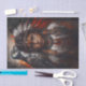 Inspire wonder with Native American child and eagle headdress decoupage tissue paper from Decoupage_Boutique. This decoupage premium tissue sheet features a fierce young warrior in vibrant red-orange feathers and ceremonial face paint, a majestic eagle perched behind—perfect for whimsical boho, spiritual, or heritage-inspired nursery and craft projects.Printed on ultra-thin, bleed-proof tissue paper, it layers invisibly with Mod Podge for a magical, painted-on look on toy chests, growth charts, dreamcatchers, or storybook boxes. The fiery red-sepia palette pops on whitewash, pastel, or natural wood.Crafters love it for: