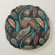 Dieses halb-abstrakte ethnische Musterkissen zeichnet sich durch Wirbel von Federn, Blume und paisley-artigen Formen in staubigen aquamarinen, Terracotta, Rost, tiefblau grün und creme aus. Dieser Vintage Stildruck passt zu verschiedenen Dekorfarben und -stilen, mit fett anmutenden Wirbel in gedämpften Tönen. Das Design ist auf beiden Seiten dieses runden Kissens gleich und es ist in mehreren Stoffen erhältlich.