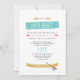 Diese einfache, moderne Hochzeitseinladung verfügt über ein Kanu mit Paddeln ganz unten. "Joyful Hearts" über einem Holzbanner oben. Federn und Pfeile. Farben sind Gold, Aqua und Rot. Ideal für eine Hochzeit im Freien, in den USA oder in der Natur. Einfach zu anpassen!
