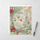 The design features a vibrant patchwork border of distressed red and sage green patterns, including damasks and plaids, framing a soft, snowy center. The center is richly decorated with classic holiday elements: bold red and cream poinsettias, snow-dusted foliage, and festive ornaments.