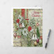 The design is built on a stunning collage of rich reds and varied greens, combining patchwork squares on the left with vintage sheet music on the right. The center features an abundant arrangement of red and creamy white poinsettias, snow-dusted foliage, and delicate white swirls.