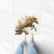 Majestätisches Springpferd mit blühenden Blume, Pflanze und rustikalen Ziegeltexturen. Eine einzigartige Mischung aus Reitgeist und botanischer Schönheit.