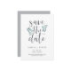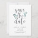 Eine schöne grüne und graue Hochzeit bewahrt die Dattelkarten mit grauen Buchstaben, die durch das blaugrüne blaugrüne Blattwerk, die Blätter und die weißen Beeren hervorgehoben werden. Personalisieren Sie Ihre Namen, Ihr Hochzeitstermin, Ihren Standort und alle weiteren Informationen, wie Ihre Hochzeitswebsite. Eine moderne Wahl in einem natürlichen Farbschema für Hochzeiten im Boho-, Wald- oder Naturbereich zu jeder Jahreszeit.