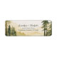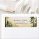 Das Hochzeitsadressschild zeigt eine natürliche Wasserfarbe mit einem Wald aus Kiefern und Bergen in Erdtönen von Salbei, Grün und Bräune.