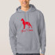 Eine schöne, große Dane Silhouette mit natürlichen Ohren, die sich hervorragend mit einer eigenen Erklärung oder einem eigenen Text kombinieren lässt. Roter Druck, Großer Tanz und Text. Schreiben Sie einfach, was Sie gewollt haben.