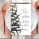 Die rustikale "Natural Pine Cone Wedding"-Speisekarte mit den Details der Mahlzeit, die Sie an Ihrem Brautparty im Wald servieren, nach der Hochzeit Brunch oder Ehe Empfang Abendessen, indem Sie den Salat oder den ersten Gang, Vorspeise oder zweiten Gang und Dessert oder dritten Gang. Personalisieren Sie es mit den Namen der Braut und Bräutigam, Veranstaltungsort und Datum. Dieses speziell für die Holzschnitzereien konzipierte Hochzeitsmenü bietet ein Schwarz-Weiß-Naturfoto eines Kiefernkonus mit weißem Hintergrund und einem zusätzlichen Sepia-Tonfilter.