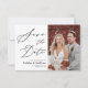 Natural White Elegant Script Moderne Foto Hochzeit Save The Date
