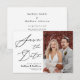 Natürliches weißes, elegantes Script Modernes Foto Minimalistische Hochzeit speichern Sie das Datum Einladungskarte (Felt Ecru Papier). Lass Familie, Freunde und Kollegen wissen, dass Sie Set ein Datum für Ihre Hochzeitsfeier mit dieser eleganten, stilvollen und modernen Hochzeit speichern Sie das Datum Einladungskarte. Alle Texte sind so vorbereitet, dass Sie sie einfach und schnell mit Ihren eigenen Details personalisieren können.