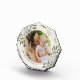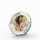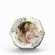 Commemorate a special moment, year, or vacation with this elegant personalized photo block in a unique geometric shape. Graceful sprigs of icy soft muted green painted watercolor mistletoe frame your photo, with two fields for your custom captions (shown with your family name and the year).
