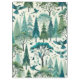 Nahtlose Muster mit aquamarinen grünen Bäumen, steil aufragenden Vögeln und üppiger Vegetation. Dieses Design spiegelt die Ruhe eines Waldgebietes wider. Dieses Kunstwerk ist ideal für Naturliebhaber und für diejenigen, die eine ruhige, von Wäldern inspirierte Ästhetik suchen. Es ist ein absolutes Muss für Produkte, die die Schönheit der Natur bewundern.