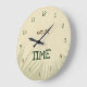 The dark green and brown typography blends beautifully with the natural color palette, while the mixed green and brown numbers add a unique organic style. This clock is perfect for nature-inspired interiors and relaxed living spaces.