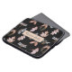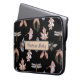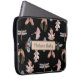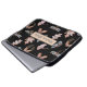 Dieser Laptop-Ärmel zeigt Images von Bienen, Schmetterlingen, Libellen, Blätter, Eicheln und Nadelkronen. Die Bilder sind aus metallischem Kupfer, grau auf schwarzem Hintergrund.